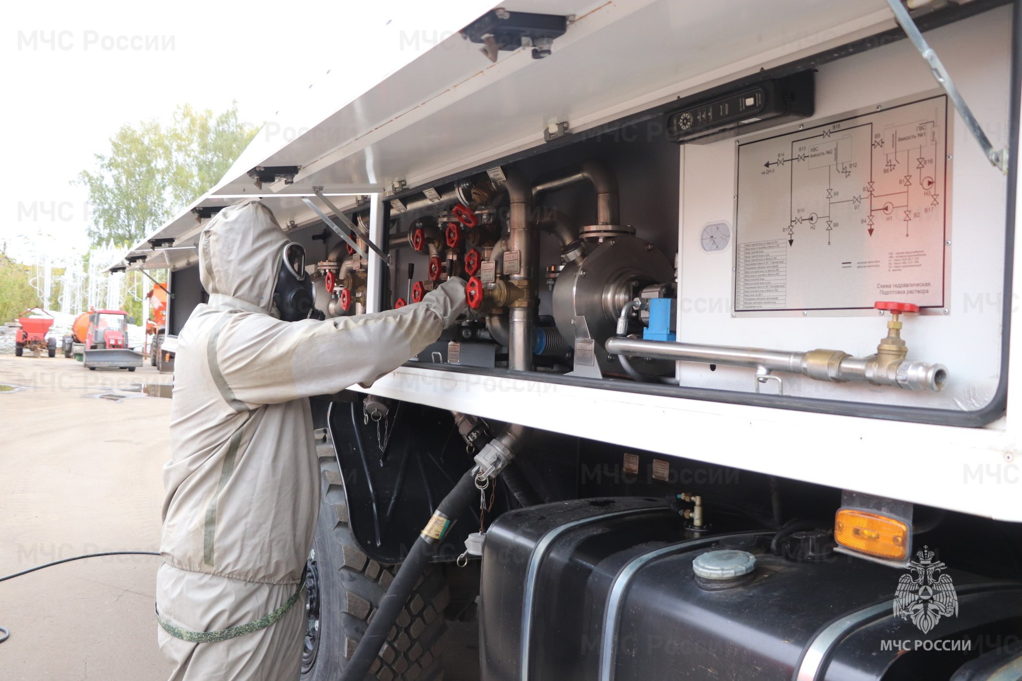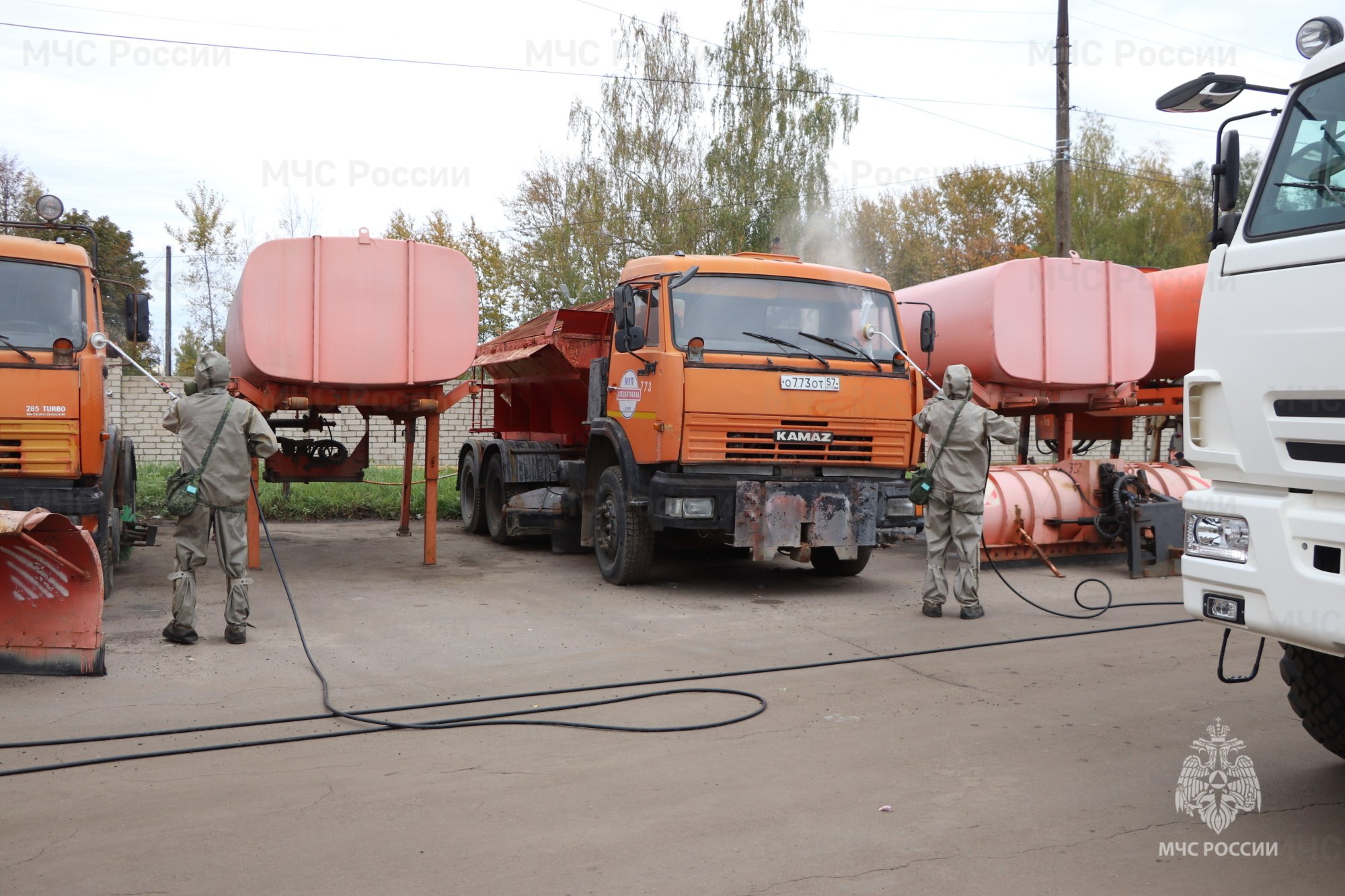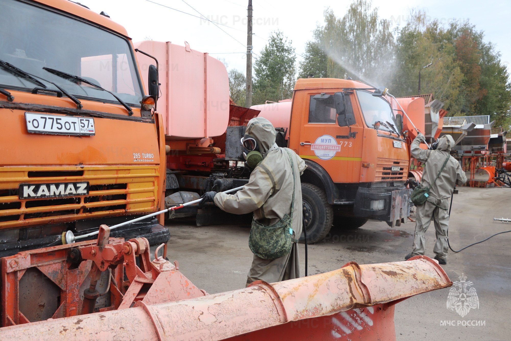 На территории МБУ «Спецавтобаза по санитарной очистке города Орла» проводились мероприятия по дезактивации техники, зданий и сооружений, участков дорог.