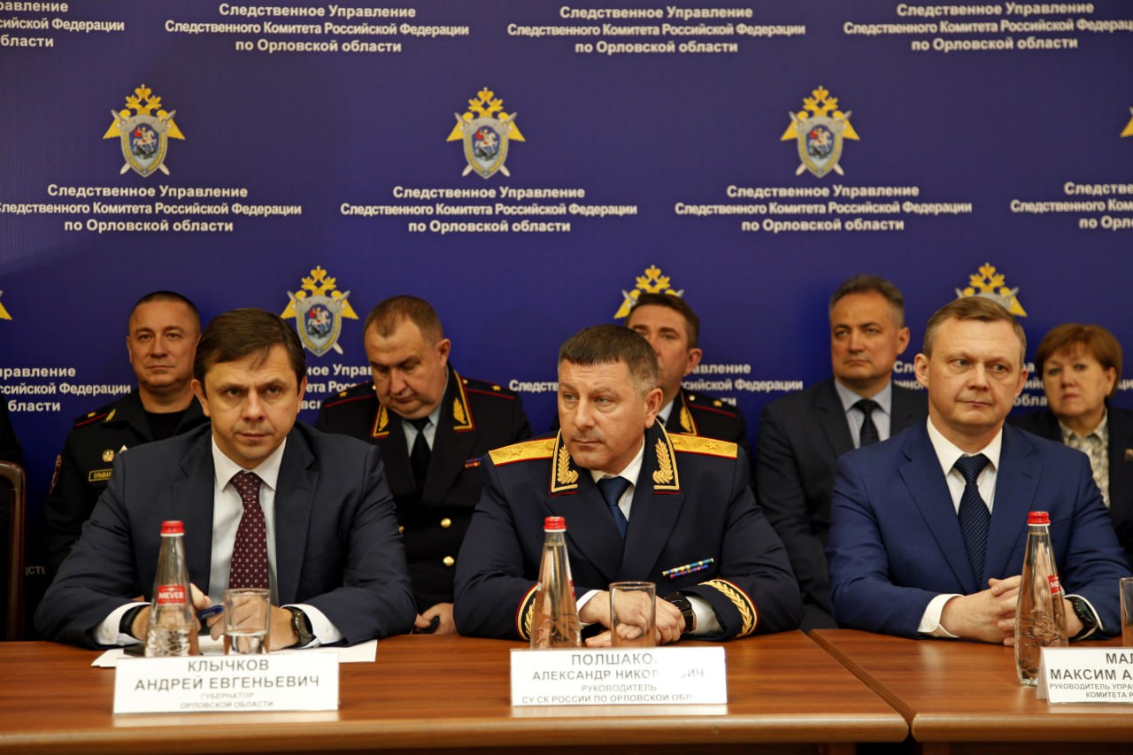 Сегодня в следственном управлении состоялось представление руководителя следственного управления Следственного комитета Российской Федерации по Орловской области генерал-майора юстиции Александра Николаевича Полшакова с участием руководителя управления кадров Следственного комитета Российской Федерации полковника юстиции Максима Малышкина, Губернатора Орловской области Андрея Клычкова, председателя Орловского областного Совета народных депутатов Леонида Музалевского, Главного федерального инспектора по Орловской области аппарата полномочного представителя Президента Российской Федерации в Центральном федеральном округе Эдуарда Голованева, прокурора Орловской области Алексея Тимошина, председателя Орловского областного суда Елены Суворовой, руководителей правоохранительных и контролирующих органов области, сотрудников следственного управления, представителей средств массовой информации.
