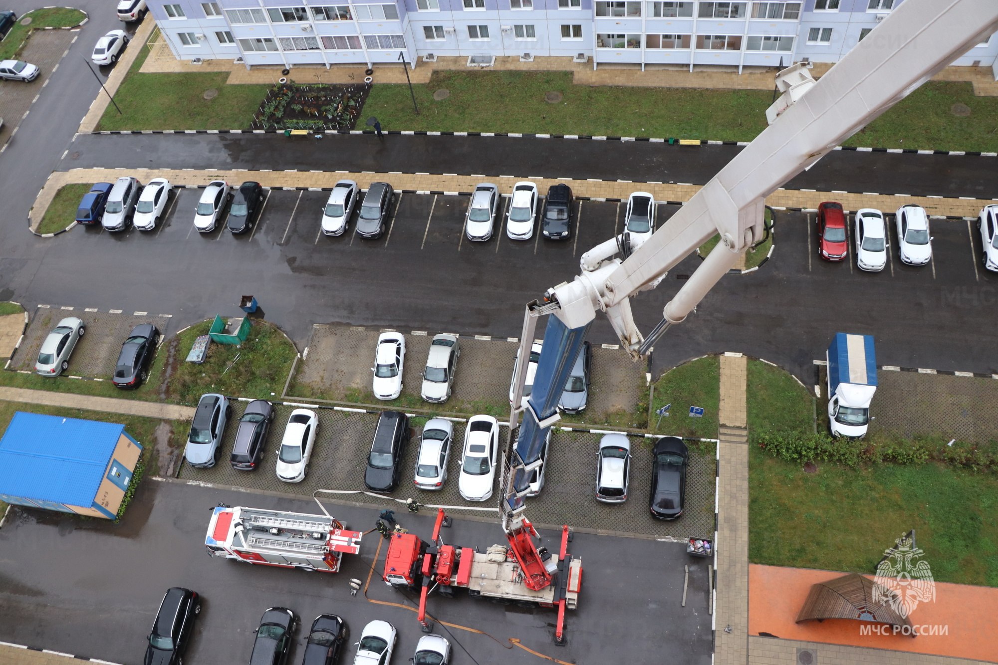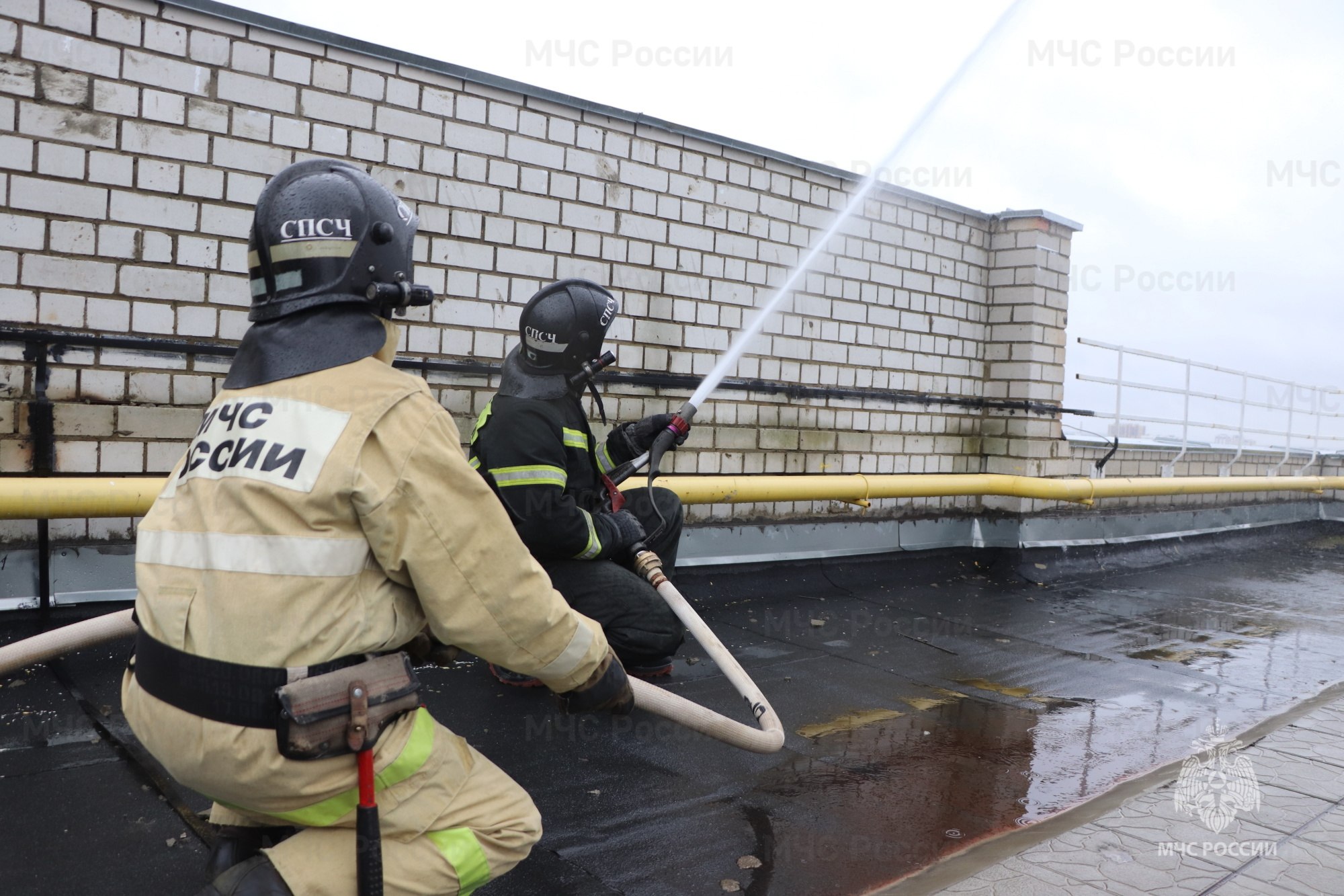 Согласно замыслу учения, пожар возник на крыше здания в помещении котельной. По прибытии огнеборцы провели разведку и тушили пожар с использованием различных средств, которые имеются в их арсенале.