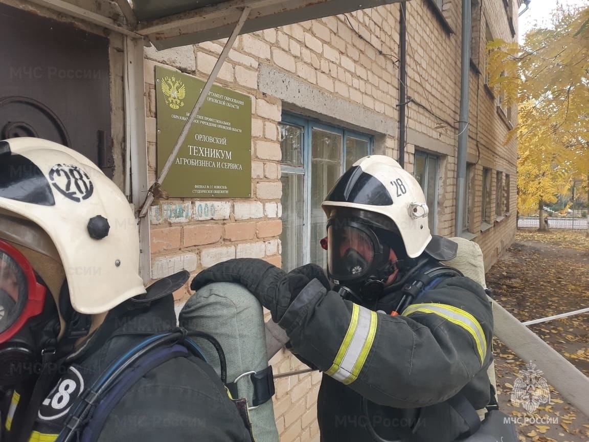 В городе Новосиле с дежурными караулами 28 пожарно-спасательной части пошло занятие в общежитие филиала № 2 Орловского техникума агробизнеса и сервиса.