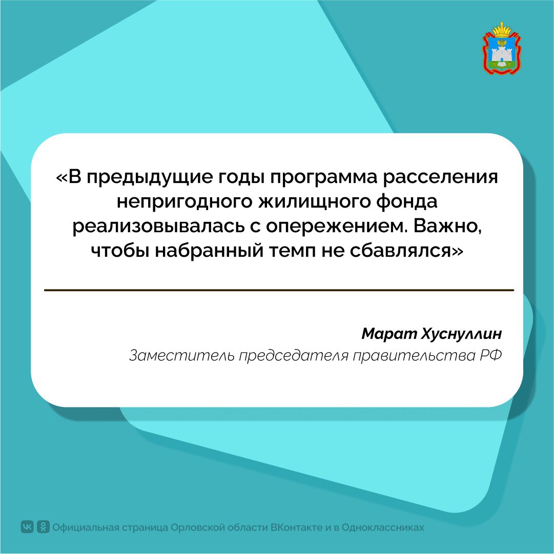 По словам заместителя председателя правительства Марата Хуснуллина, в предыдущие годы расселение шло с опережением графика и теперь важно не сбавлять темп.