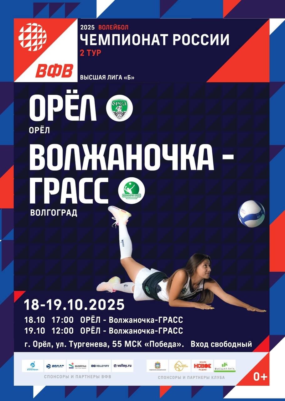 В эти выходные в Орле состоится 2-ой тур Чемпионата России по волейболу среди женских команд Высшей лиги «Б». Орловская ВК «Орёл» сразится с волгоградской «Волжаночкой-ГРАСС».