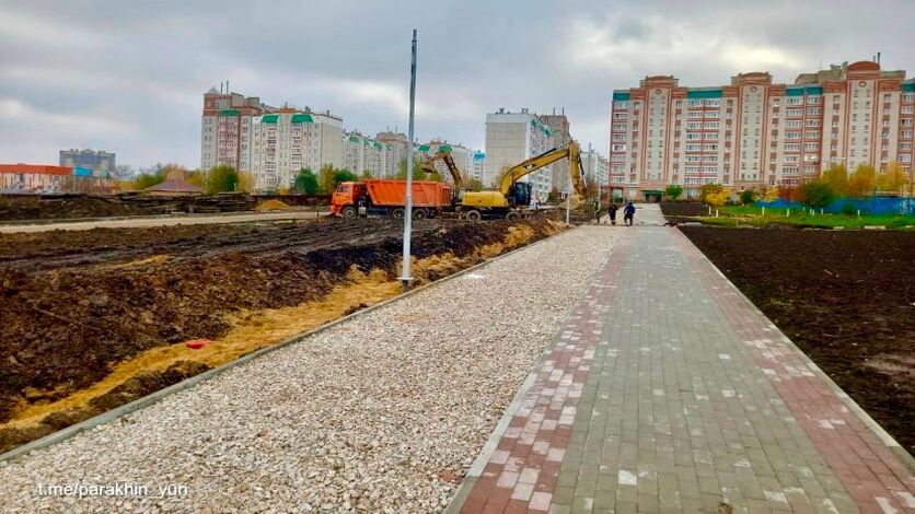 Завершается устройство основания под асфальт, идет планировка дорожного полотна, монтируются опоры освещения. Параллельно благоустраиваются тротуары и велодорожки