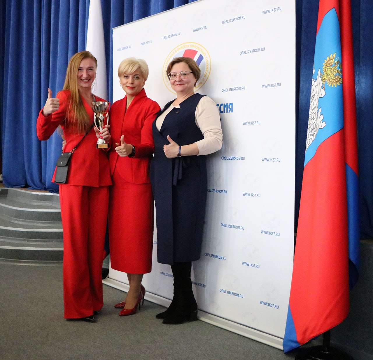 Кубок Екатерине Поликаровой за деятельность в качестве председателя ТИК Железнодорожного района города Орла передала председатель ТИК Кромского района Марина Чучина.