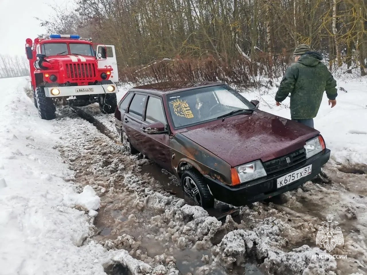 Четыре раза спасатели отбуксировали застрявшие автомобили в Свердловском и Мценском районах. В Троснянском районе пожарные помогли водителю, в автомобиле которого пробило колесо.