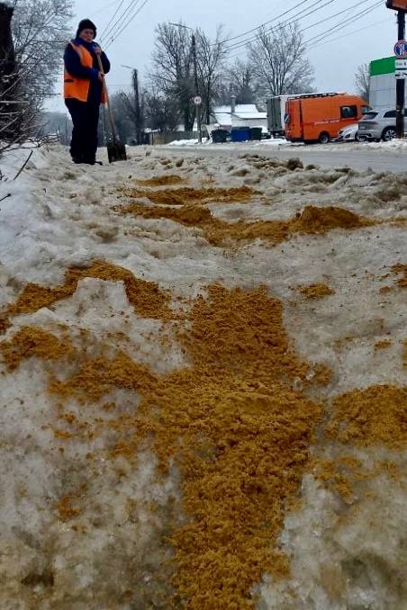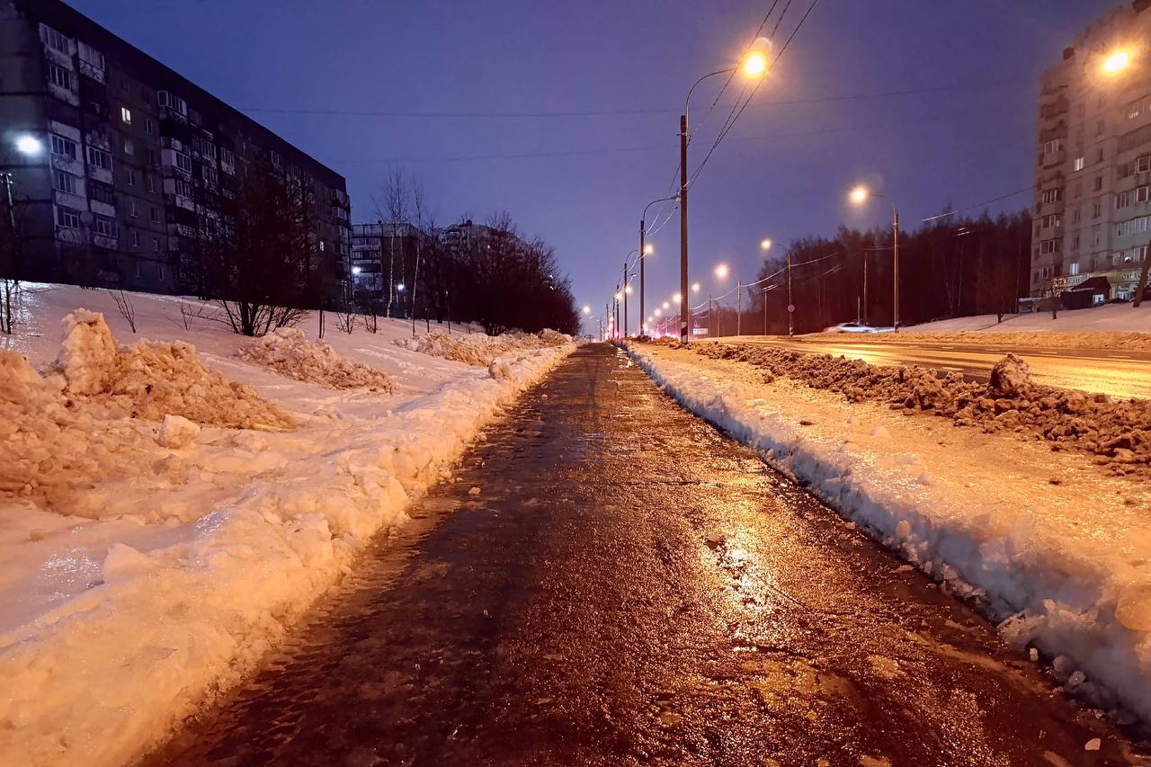 В связи с ухудшением погодных условий и понижением температуры до –9°С в вечернее время продолжаются активные работы по разметанию и посыпке тротуаров противогололёдными материалами.