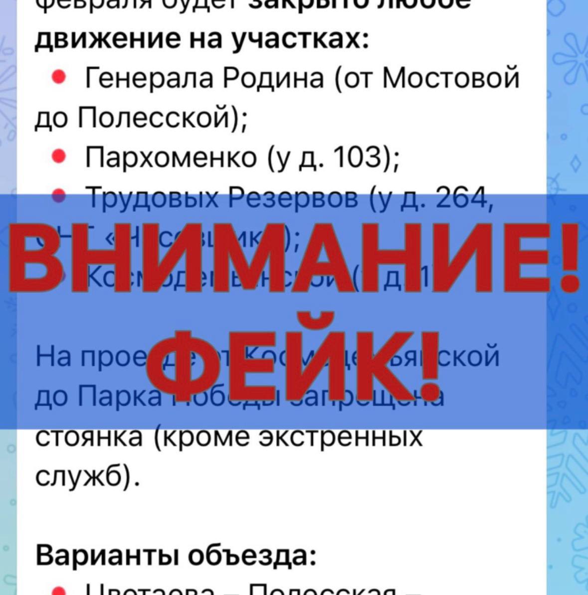Ранее КУ ОО "Организатор перевозок" сообщали, что с 28 января по 3 февраля будет перекрыто движение по некоторым улицам Советского района.