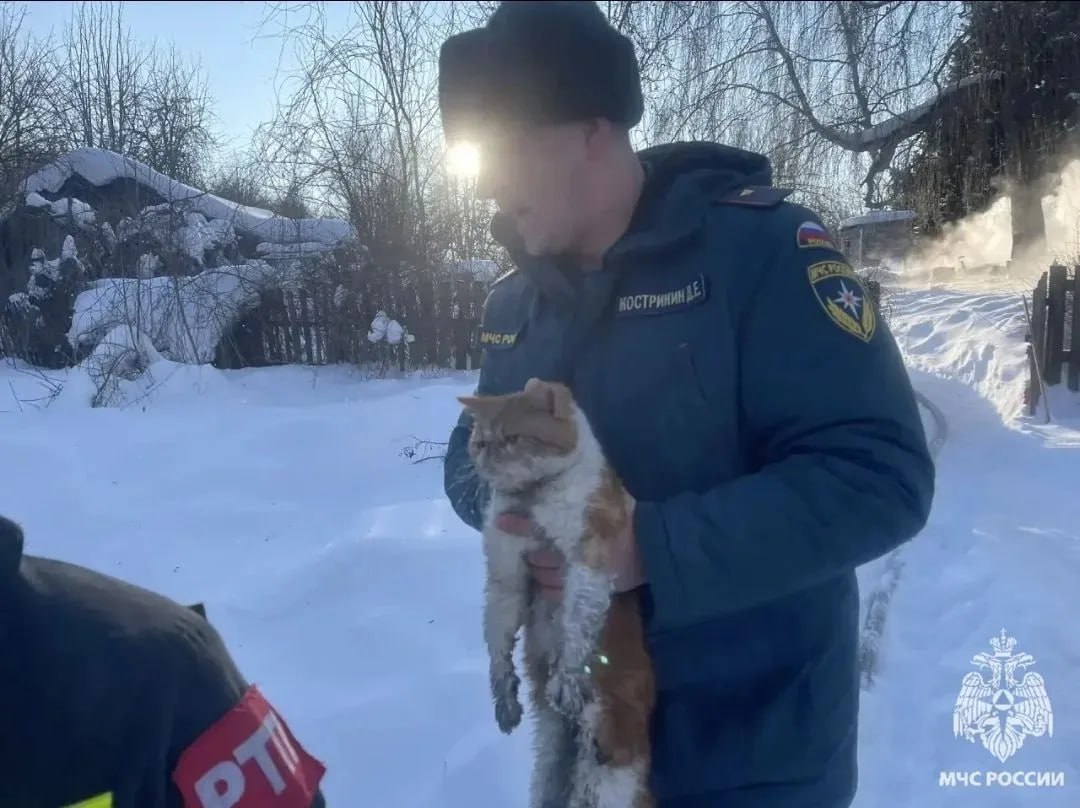Сотрудники МЧС спасли рыжего кота, чудом не погибшего на пожаре под Орлом