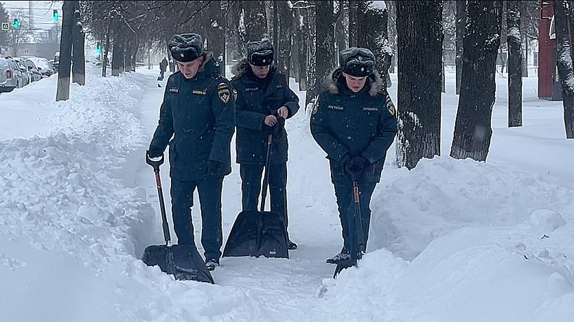 Сотрудники МЧС России по Орловской области вышли на уборку снега