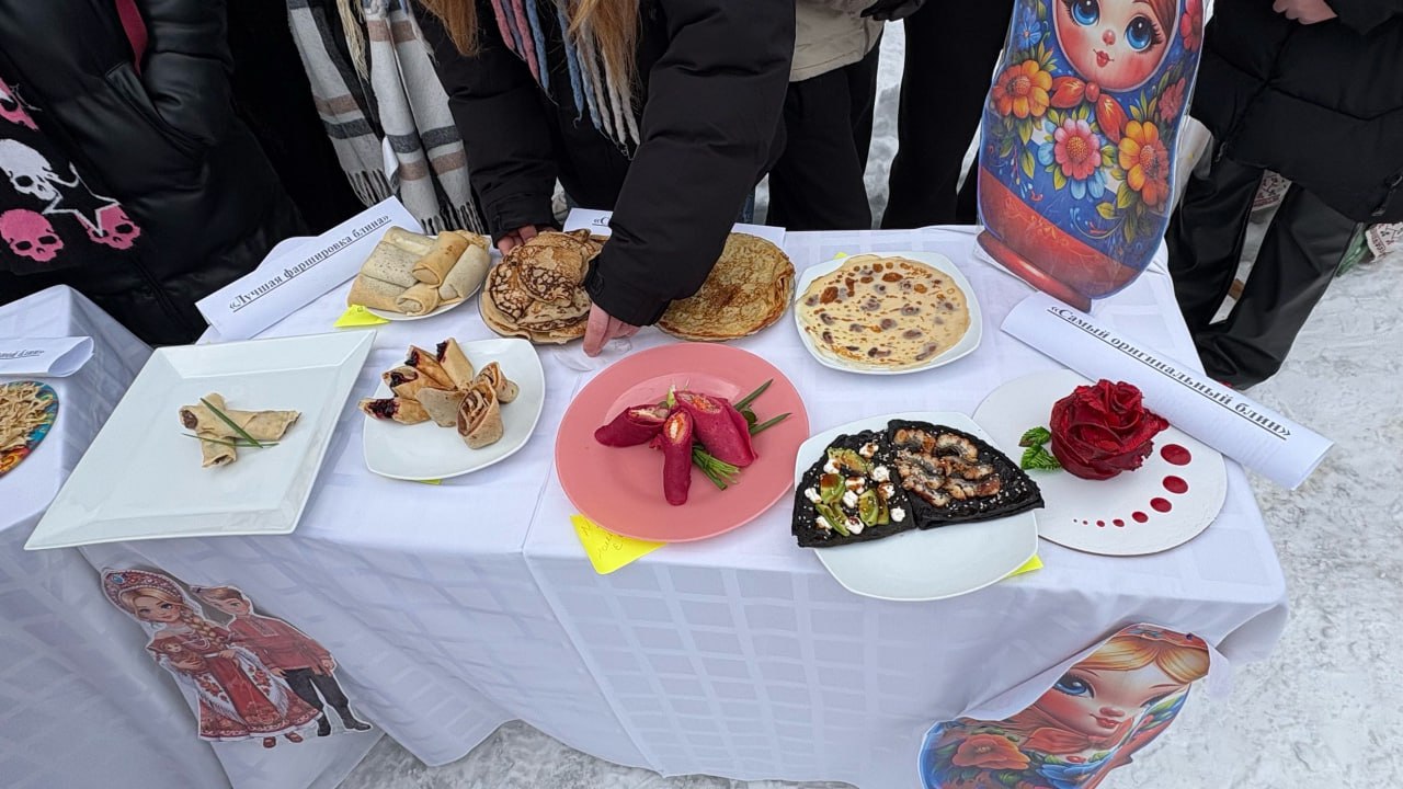 Особое место в программе гуляний занял конкурс на самый вкусный блин. Фантазии участников можно было только позавидовать: на столах красовались кружевные тончайшие блины, аккуратные блины-роллы с разнообразными начинками, классические румяные угощения и даже блин, оформленный в виде розочки.