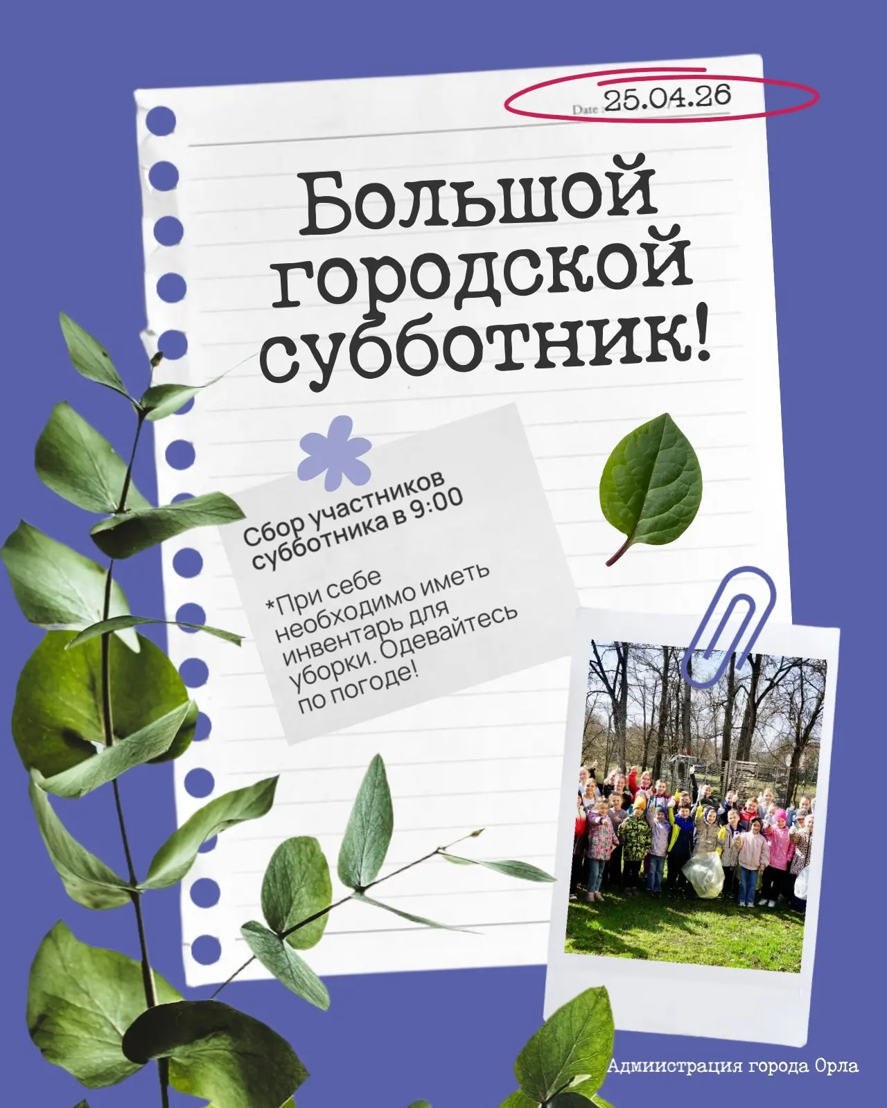 С каждым днём всё больше орловчан выходят на уборку, и результат этой общей работы уже виден: город становится заметно чище и комфортнее. Благодарю всех, кто уже присоединился!