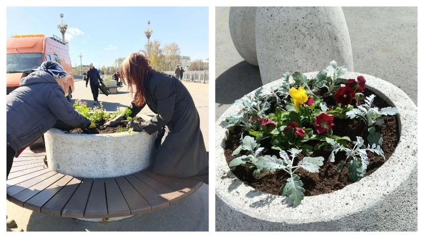 В вазоны на Александровском мосту в Орле высадили цветы