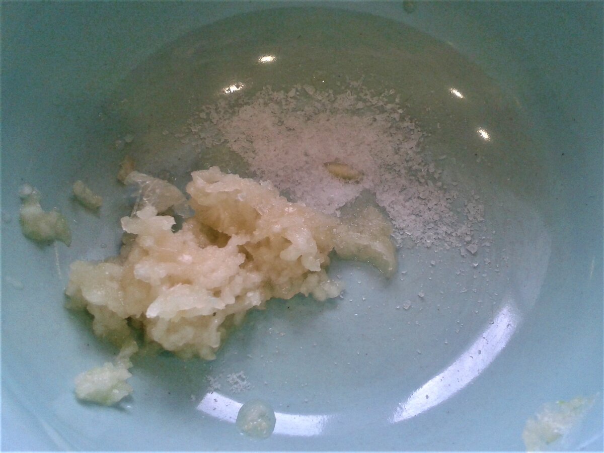 3. В глубокой миске выдавите чеснок, добавьте соль и залейте горячим маслом. Хорошо перемешайте и добавьте молотую паприку.