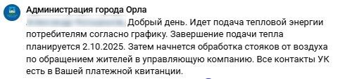Напомним, что в департаменте ЖКХ, ТЭК и энергосбережения Орловской области заявили, что в регионе по состоянию на 1 октября тепло подано в 55% жилого фонда, а подключение школ, детских садов и объектов здравоохранения завершено на 93%, 91% и 94% соответственно