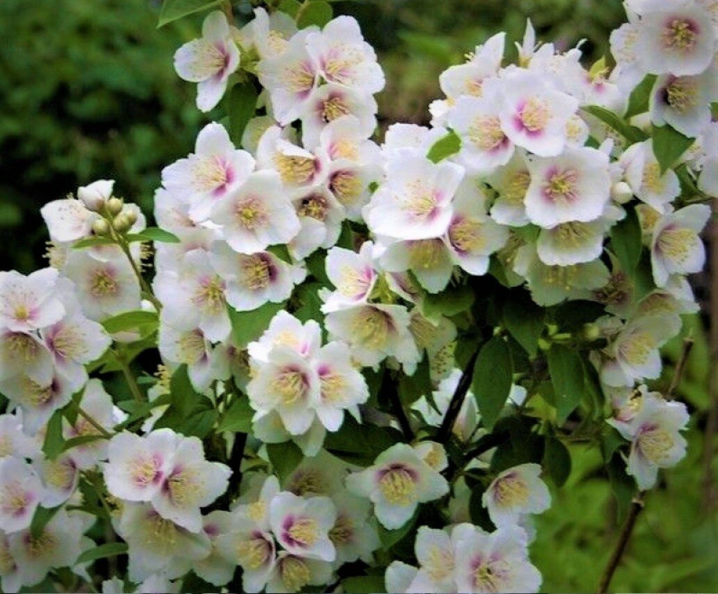 Эти чубушники восхищают обилием белоснежных цветков, которые распускаются в июне-июле. Во время цветения куст наполняет сад атмосферой легкости и романтики. Чубушник подойдет даже для небольших участков; его высота достигает всего 1,30-1,50 метра, что делает его идеальным вариантом для декорирования близости к дому или беседке.