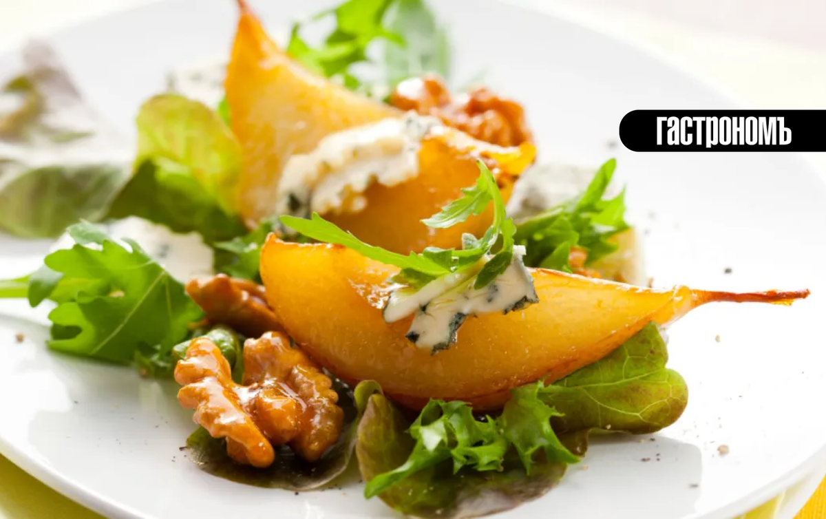 - Салат: соедините груши, горгонзолу, рукколу и грецкие орехи, заправьте лимонным соусом — готовое блюдо станет не только вкусным, но и визуально привлекательным.