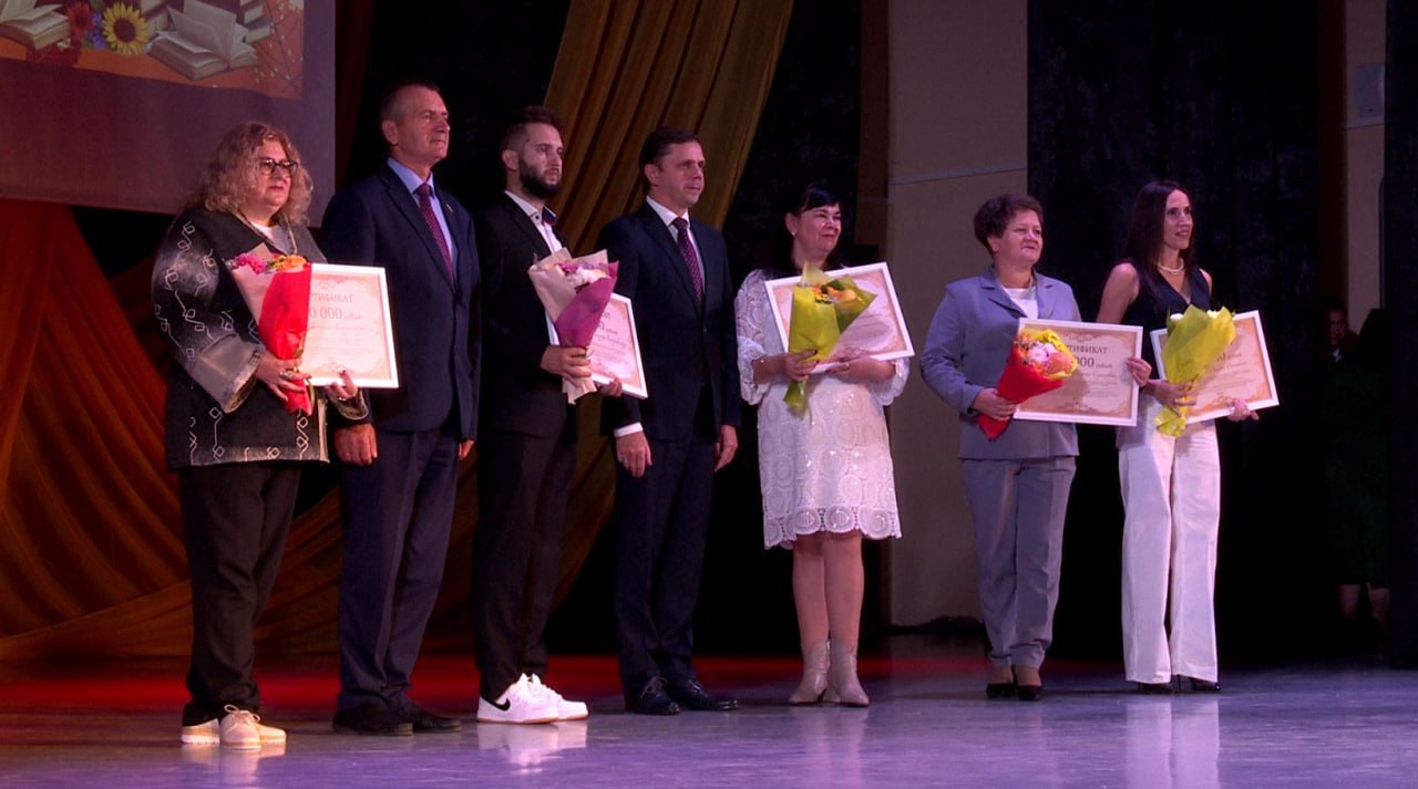 А также наградили пять победителей конкурсного отбора на присуждение премий лучшим учителям за достижения в пед. деятельности в 2024 году, им вручили сертификаты на 200 тысяч рублей.