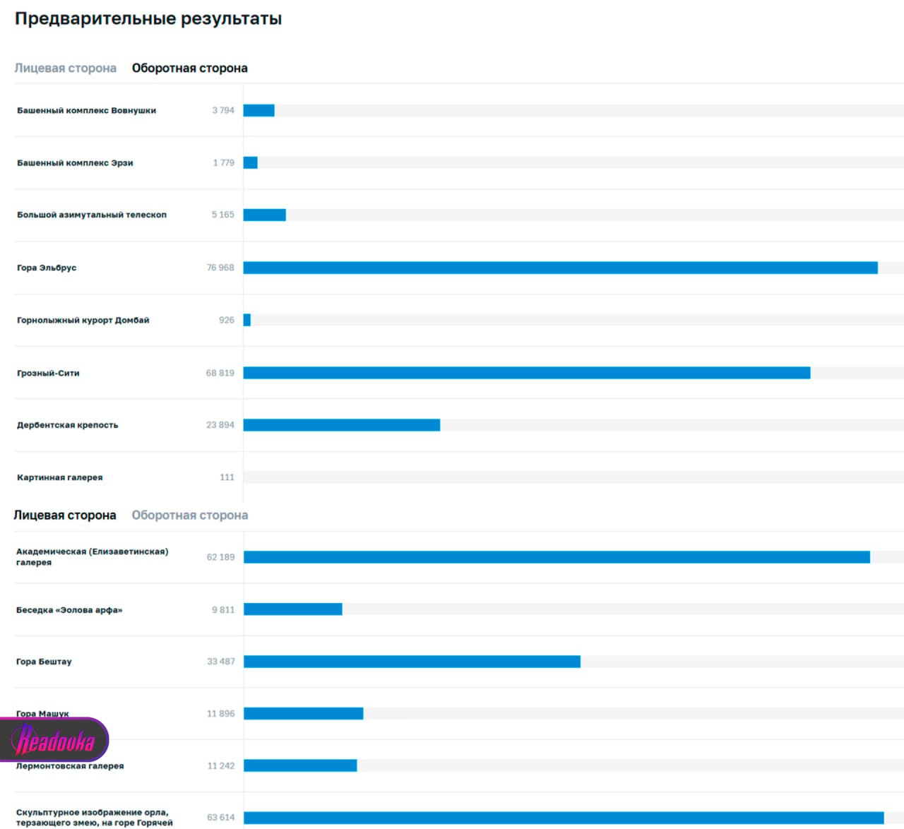 На лицевой стороне тем временем с отрывом в чуть более 1 тыс лидирует изображение «орла, терзающего змею». Второе место занимает Академическая (Елизаветинская) галерея. Голосование завершится 14 октября в 12:00 по Москве.