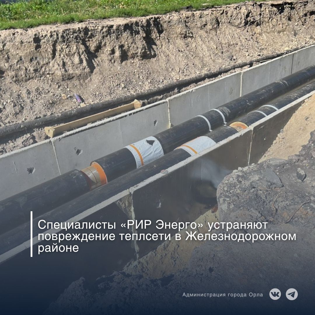 Специалисты «РИР Энерго» выявили повреждение магистральной тепловой сети на пересечении улиц Новосильской и 2-й Курской.