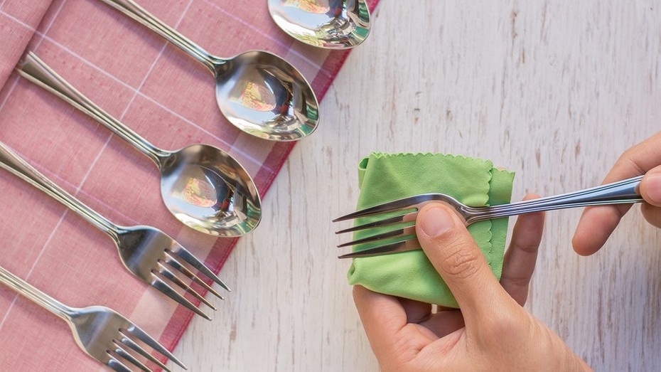 - Фольга и сода: поместите изделия в кастрюлю с кипящей водой, добавив соду и кусок фольги. Оставьте на несколько минут, затем вытрите насухо.