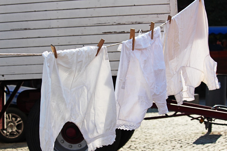 Белое белье чаще всего страдает из-за жёсткой воды. Поэтому оно приобретает серый оттенок. Желтые пятна могут появляться из-за того, что белые вещи долго лежали вместе с тёмным грязным бельём и из-за пота. Поэтому рекомендуется их стирать сразу.