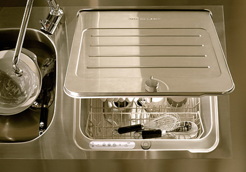 Угол кухни часто остается пустым и неэффективно используется. Однако благодаря компактным посудомоечным машинам с вертикальной загрузкой, которые идеально вписываются в угловую зону, это пространство можно задействовать. Хотя такие устройства вмещают около 6 комплектов посуды, этого достаточно для небольшой семьи. Заменяя стандартные «посудомойки», шириной 60 см, они освобождают много места и значительно упрощают процесс уборки.