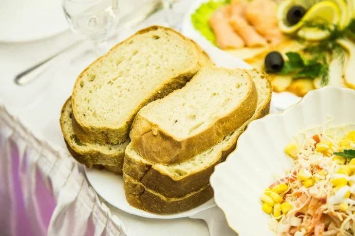 Шаг 1. Подсушите ломтики хлеба в тостере или на сковородке. Лучше использовать цельно-зерновой хлеб.