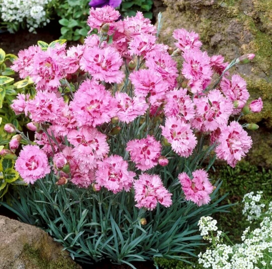 Гвоздика отлично растет среди камней и не требует высокого уровня плодородия, что делает ее подходящей для рокариев и альпийских горок.