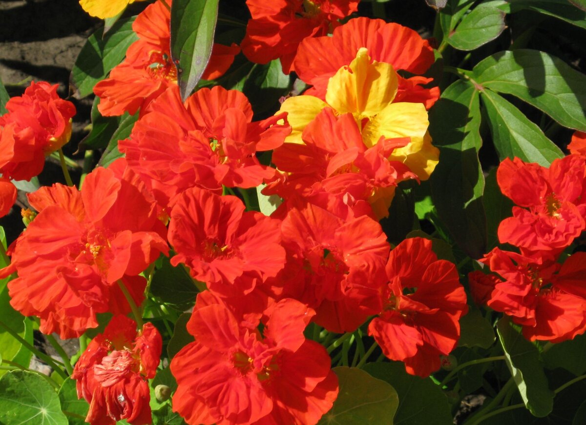 Настурция предпочитает солнечные места и не переносит заморозков, поэтому ее лучше всего сажать в скором времени, начиная с мая. Сначала рекомендуется замочить семена в воде с добавлением пищевой соды, а затем высадить в хорошо дренированную почву, обогащенную гумусом. Для кустовой формы рекомендуется расстояние между растениями в 20-25 см, а для вьющихся – не менее 40 см.