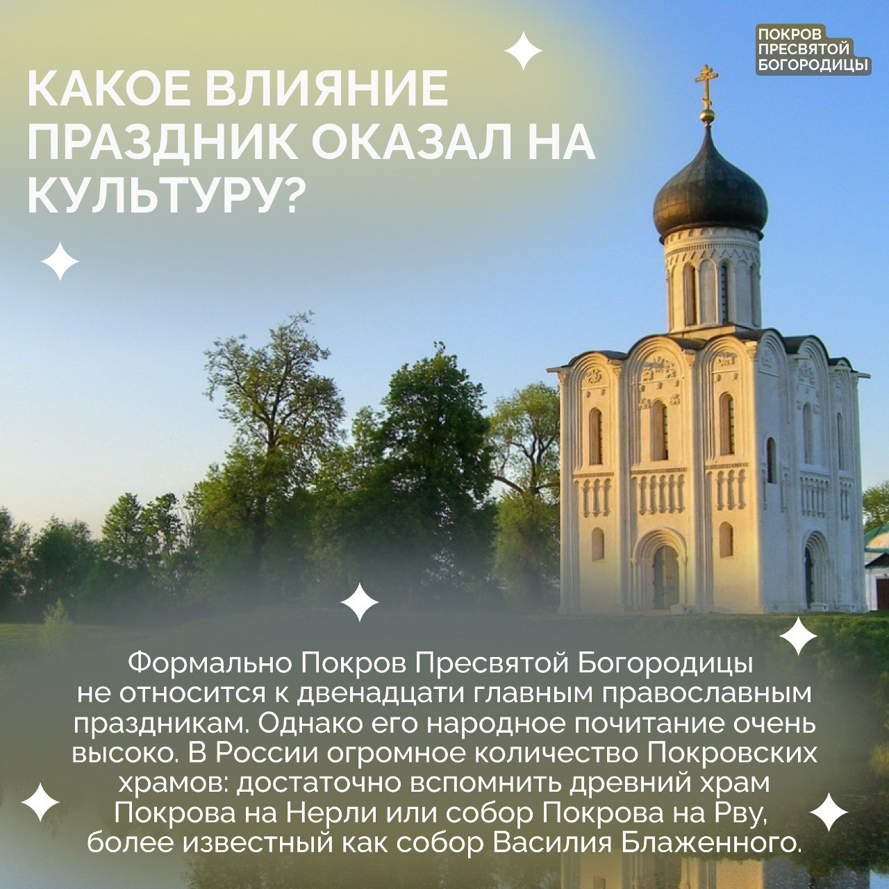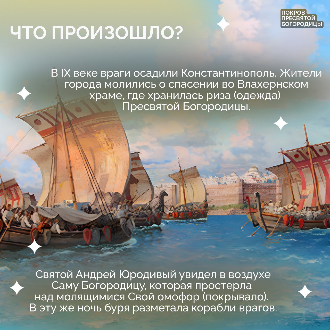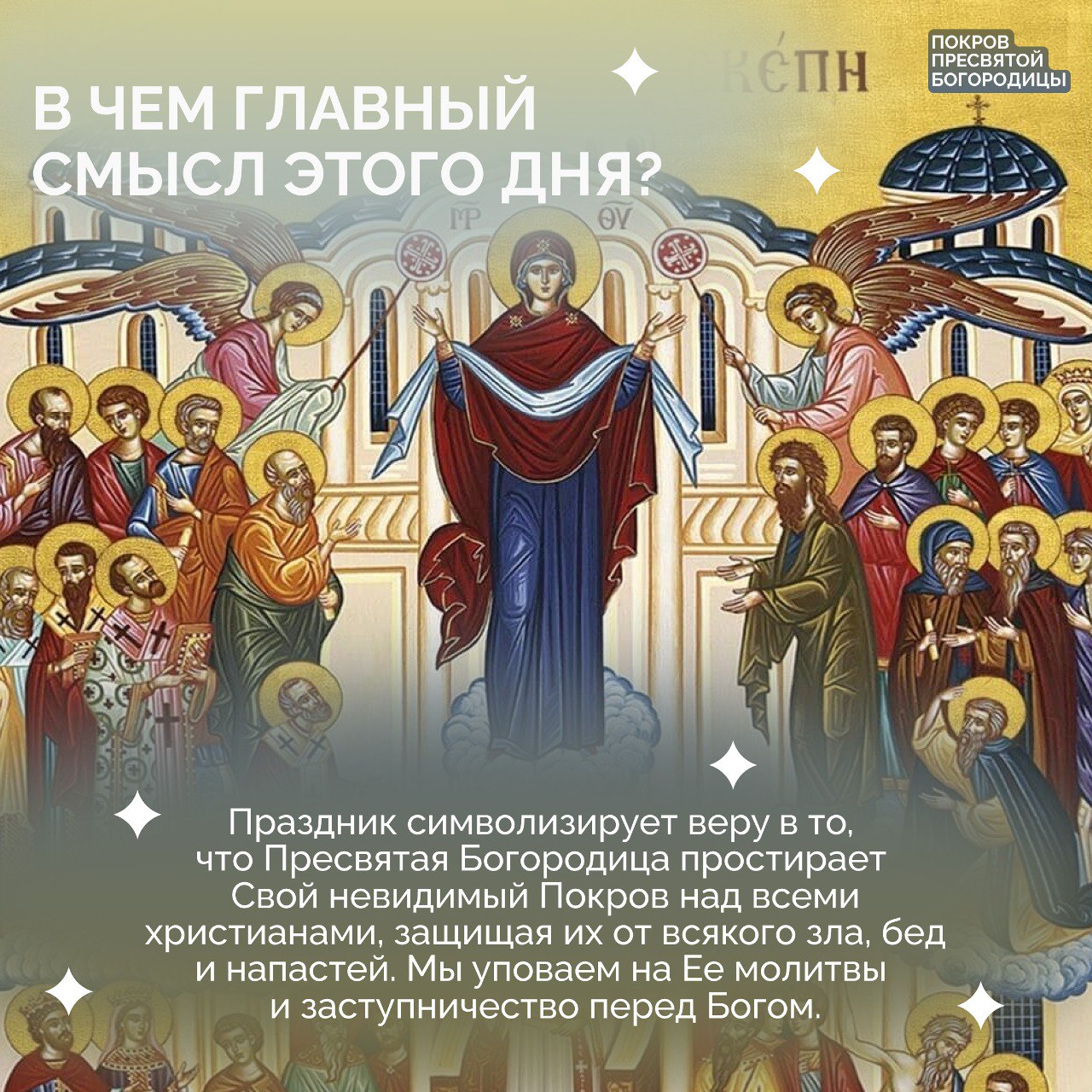 Каждый год 14 октября православные христиане отмечают светлый праздник — Покров Пресвятой Богородицы. Он основан на событии, которое являет любовь и заступничество Божией Матери за весь род человеческий.