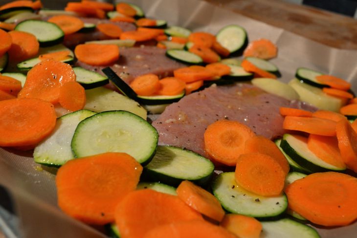 Для его приготовления нужно взять 2 кабачка, 2 моркови, 1 луковицу, 300 граммов шампиньонов, 3 зубчика чеснока, 2 яйца, 5 столовых ложек овсянки, 250 граммов сметаны, по половине пучка петрушки и укропа, 200 граммов твердого сыра, 3 томата, пару столовых ложек растительного масла и соль по вкусу.