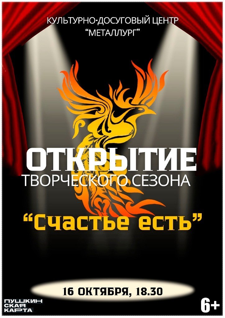 16 октября в 18:30 культурно-досуговый центр «Металлург» приглашает орловцев и гостей города на торжественное открытие 15-го творческого сезона. В этот вечер зрителей ждёт праздничная программа под символичным названием «Счастье есть!».