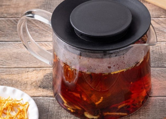 Приступая к приготовлению, первым делом нужно очистить имбирь и нарезать его тонкими ломтиками. Эти ломтики отправляются в заварочный чайник. Затем кардамон и душистый перец аккуратно размалываются в ступке и добавляются к имбирю. Туда же помещаются палочка корицы, цедра апельсина, каркаде и черный чай.