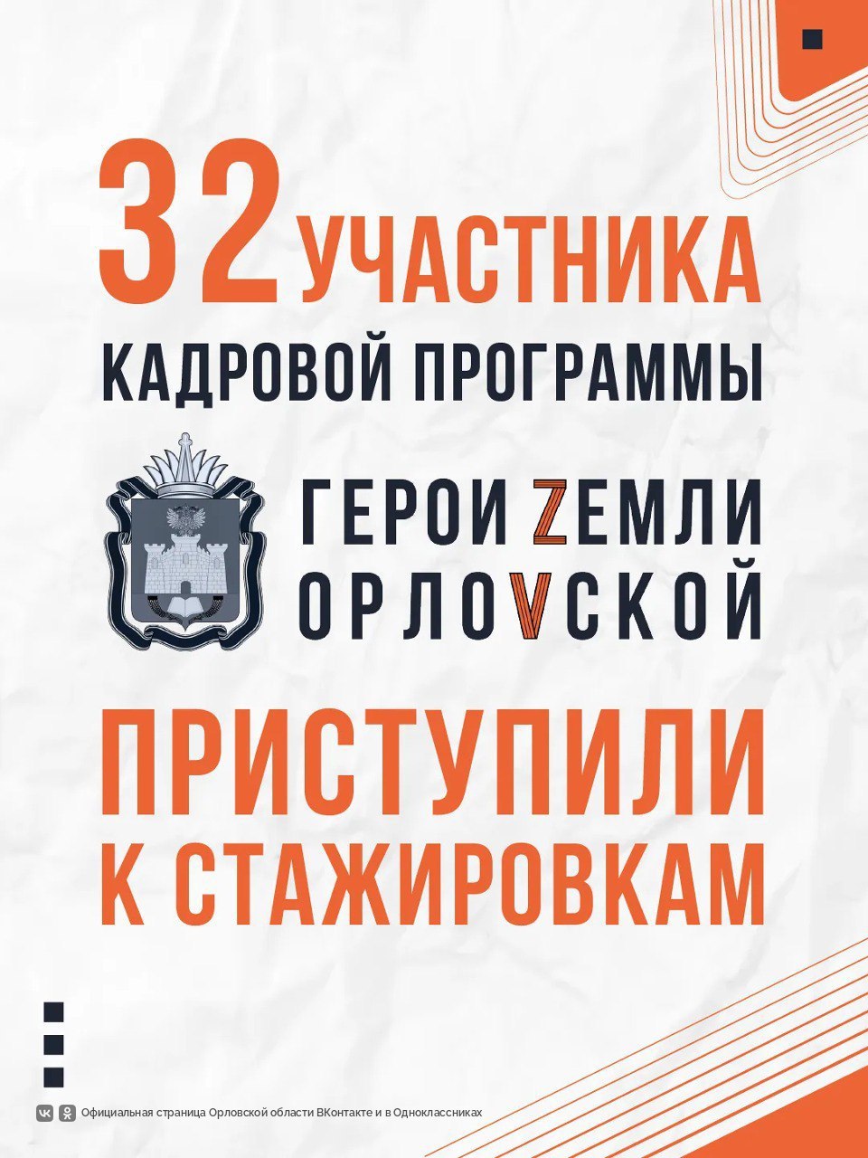 32 участника кадровой программы «Герои земли Орловской» приступили к стажировкам.