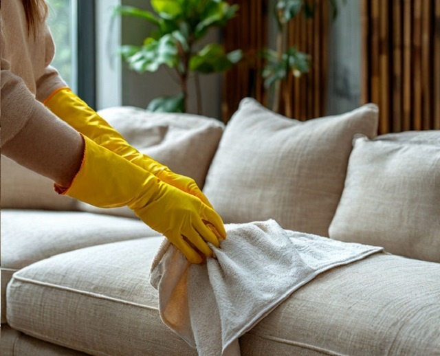 - Сначала протестируйте чистящее средство на незаметном участке, чтобы убедиться, что оно не повредит обивку.