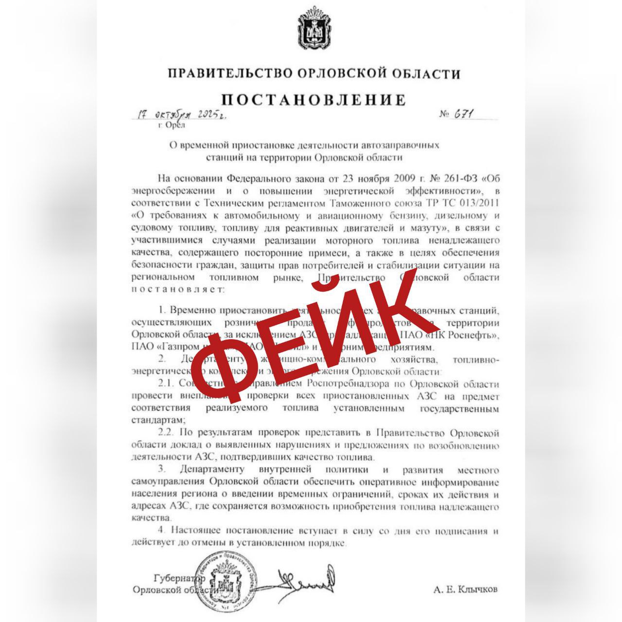 В документе губернатор Андрей Клычков якобы предлагает временно закрыть все АЗС в регионе.