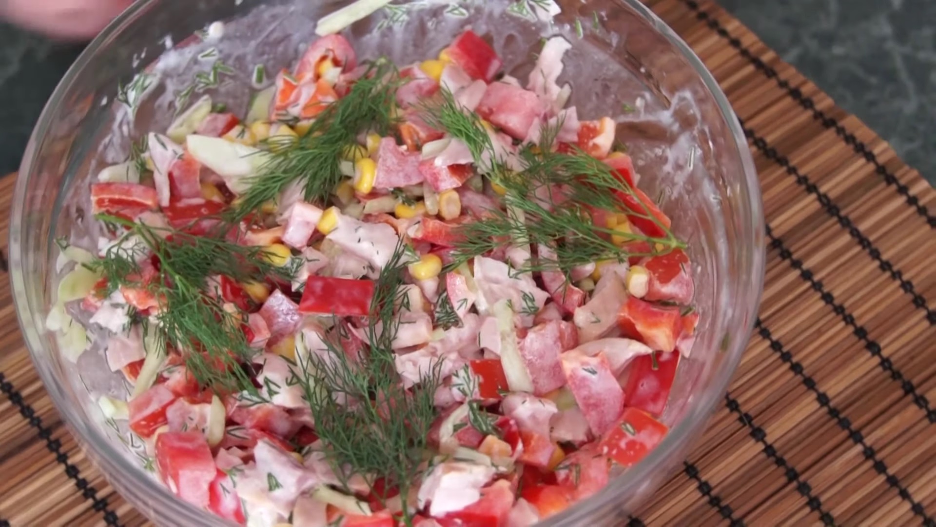 Птицу и овощи нарежьте на брусочки, зелень порубите. Смешайте все ингредиенты и приправьте блюдо майонезом с солью, советует Дзен-канал «Совет да Еда». Готово! Можно подавать аппетитный салат на стол и не бояться, что гости останутся голодными. А самое главное — вы сэкономите драгоценное время и сможете уделить внимание родным.