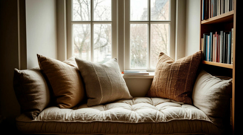 Не спешите с выводами — ваше идеальное место для чтения может быть прямо у вас под носом. Изучите пространство квартиры: подоконник может стать уютным местечком с несколькими подушками и пледом. Также стоит обратить внимание на невостребованный угол комнаты, где можно разместить небольшой столик и удобное кресло.