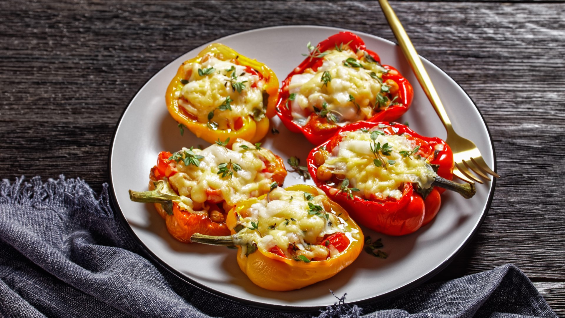 Перчики посыпьте сверху сыром и отправьте в разогретую до 200°C духовку на 10-15 минут. Как только сыр расплавится, блюдо можно доставать.