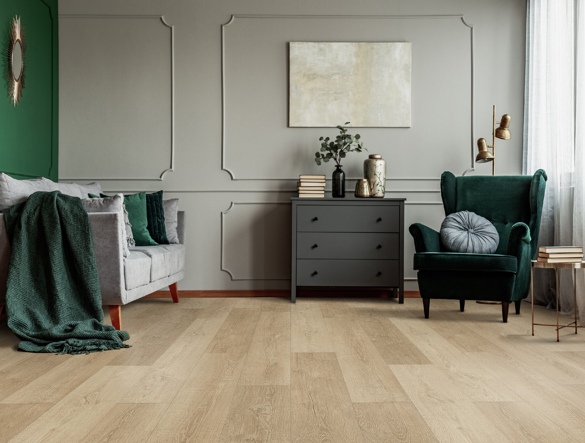 При выборе кварцвинила также нельзя забывать про защитный слой, который отвечает за долговечность покрытия. Качественный слой должен быть толщиной не менее 0,4 мм, желателен — 0,5–0,55 мм для устойчивости к износу. В продвинутых моделях добавляется оксид алюминия, который делает поверхность более устойчивой к царапинам, оставаясь при этом непроскользкой.