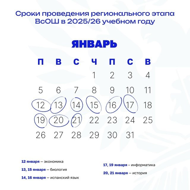 Согласно документу, региональный этап пройдёт с 12 января по 28 февраля 2026 года во всех 89 субъектах страны и на федеральной территории «Сириус».