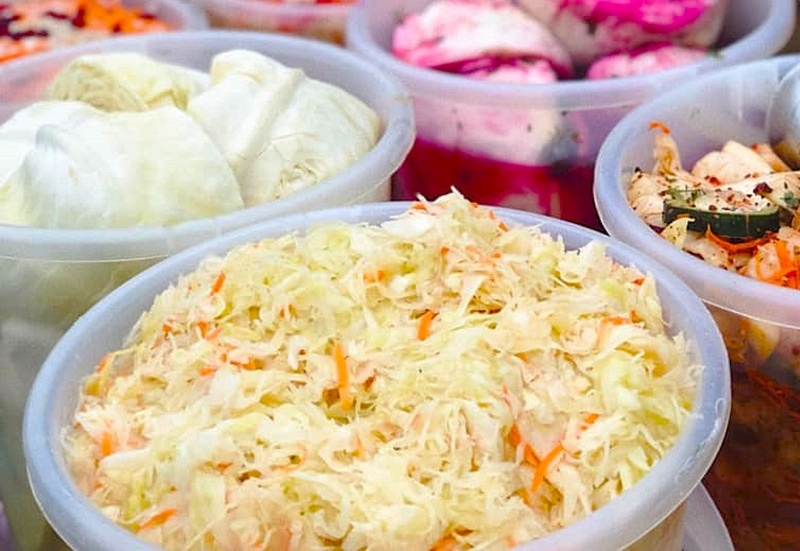 Смешать капусту с морковью, добавить специи и соль. Тщательно перемешать ингредиенты, чтобы выделился сок, и утрамбовать в банки. Важно следить за процессом брожения – протыкать массу для выхода газов, контролируя создание сока. Через 48 часов накрыть банки крышками и переместить в холодильник. Спустя 72 часа капуста готова к употреблению.