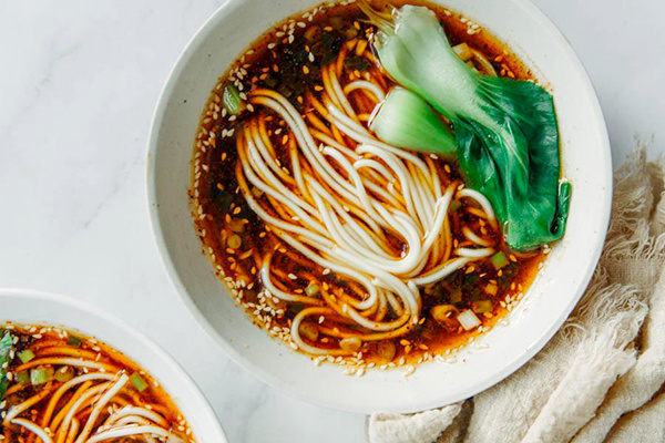 Суань Тан Мянь, или лапша с остроконечно-кислым бульоном, традиционно популярна в китайской провинции Шаньси. Это местное лакомство предпочитают за способность придавать энергии и бодрить. Оригинальная версия — бианг-бианг мянь — готовится с рукодельной широкой лапшой и ярким соусом, который также можно адаптировать для домашнего исполнения.