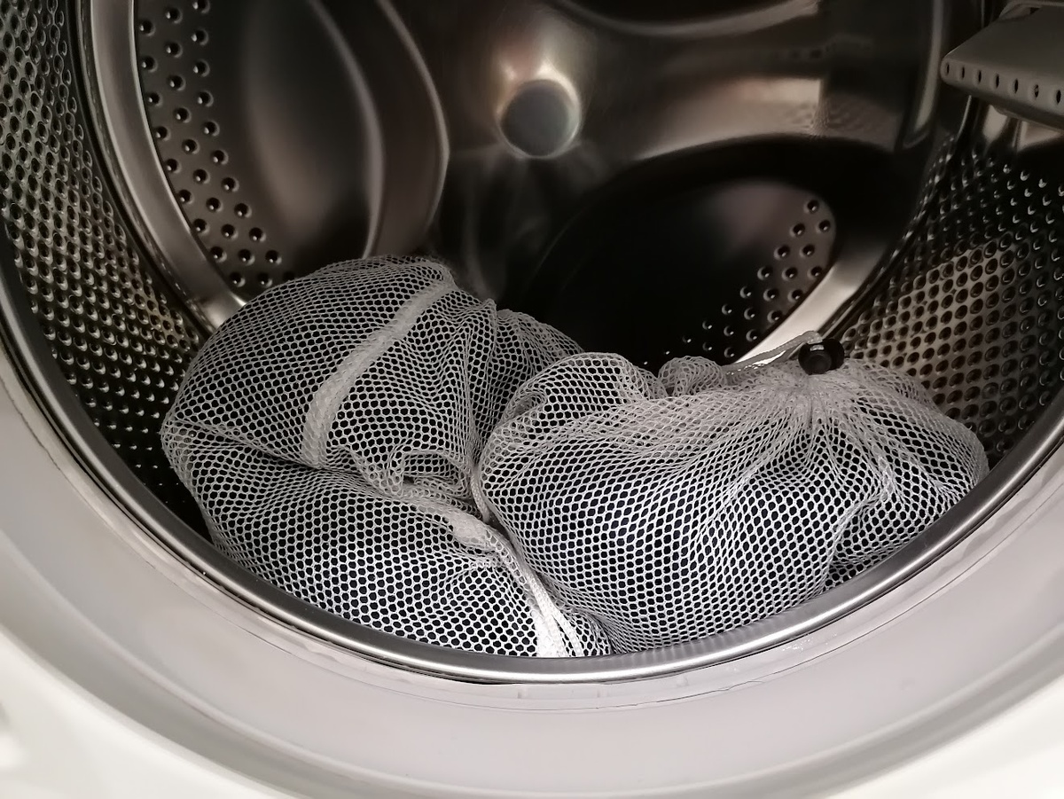 - Используйте сетчатые мешки: Они защитят ваши вещи от деформации и косметических повреждений во время стирки. Удобно, что мелкие предметы, такие как монеты и скрепки, не попадут в насос стиральной машины. Сетчатые мешки на шнуре лучше, чем молнии, так как зачастую расстегиваются.