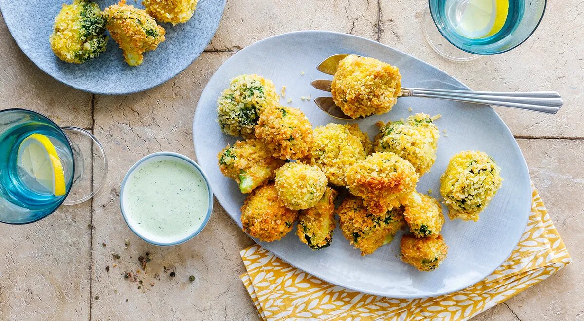 - Брокколи в панировке: Отварите, потом обваляйте в яйцах и панировочных сухарях, и обжарьте до золотистой корочки. Это идеальная закуска для вечеринок!