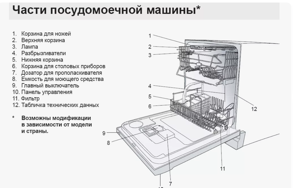 Посудомоечная машина — это не просто бытовой прибор, а высокотехнологичное решение для чистоты на кухне. Она состоит из множества деталей, которые работают в идеальной гармонии, чтобы мыть посуду с максимальной эффективностью. Разберемся подробнее в ее устройстве и принципах работы.
