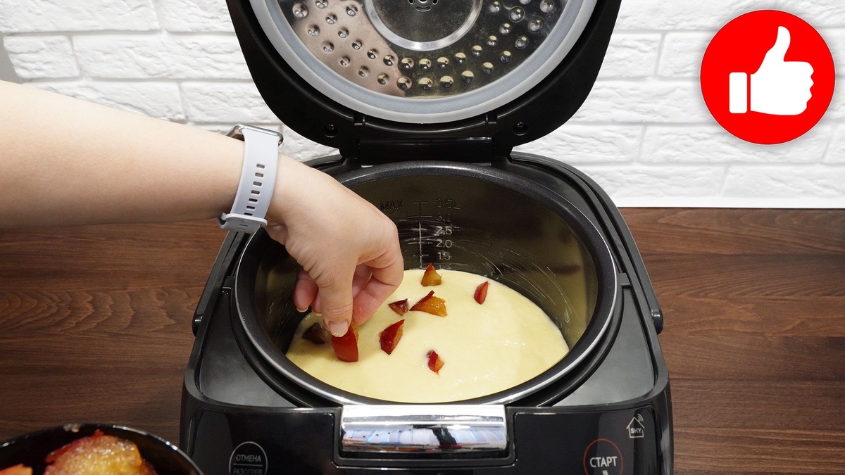 После того как тесто готово, нужно смазать чашу мультиварки маслом и вылить в нее получившуюся массу. Введите нарезанные сливы, вдавливая их в тесто. Установите режим «Выпечка» (или «Мультиповар» на 130°C) на 45-60 минут в зависимости от модели вашей мультиварки.