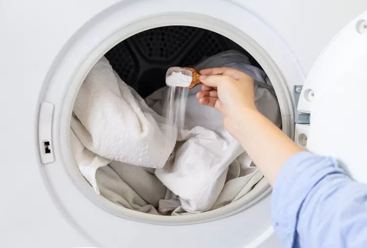 - Пищевая сода: Это простое средство отлично борется как с неприятными запахами, так и с загрязнениями. Сода восстанавливает цвет белого белья и делает его более ярким, достаточно добавить две столовые ложки перед стиркой, избегая избытка, чтобы избежать порошкообразного осадка.