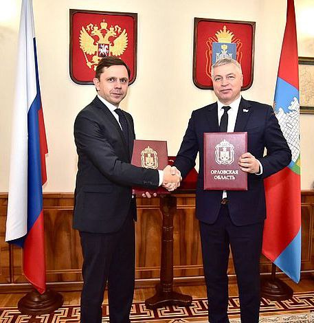 Губернатор Орловской области Андрей Клычков и председатель всероссийского физкультурно-спортивного общества "Динамо" Анатолий Гулевский подписали соглашение о сотрудничестве