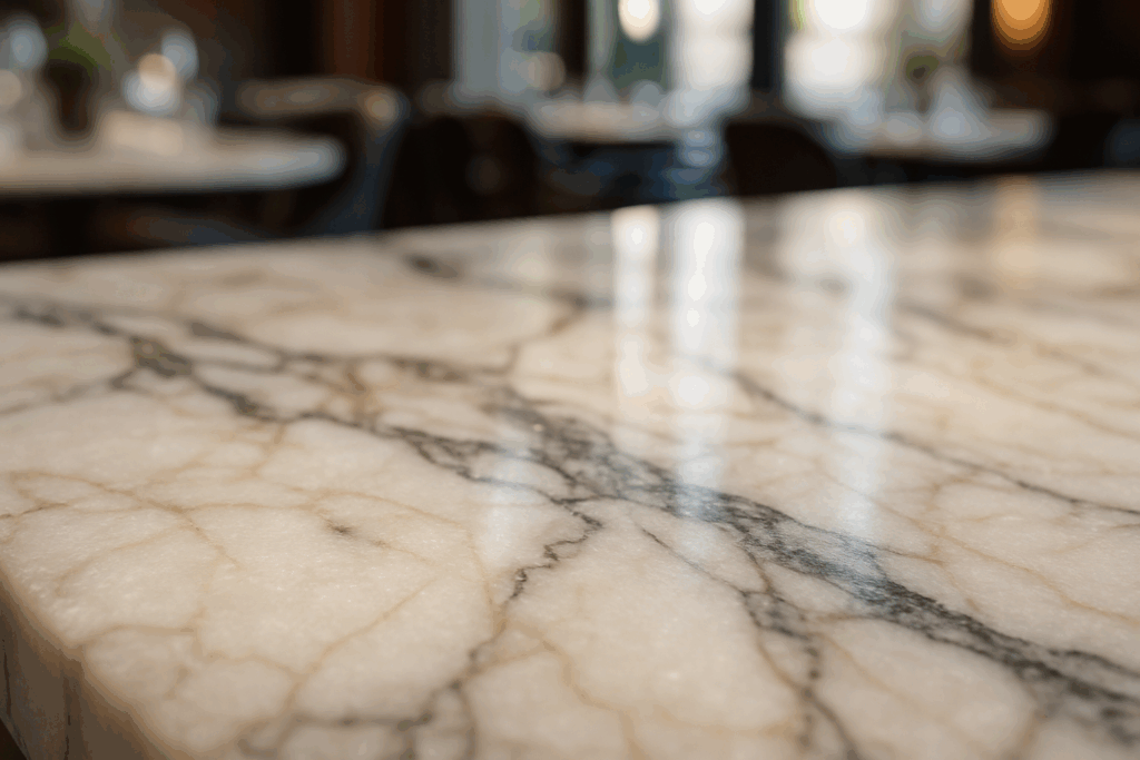 - Кварцевый агломерат: этот материал известен своей высокой устойчивостью к загрязнениям и легкостью в уходе, что делает его идеальным выбором для ресторанов.